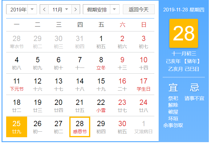 网络杂谈感恩节是多少号(美国的感恩节每年定于多少号)现在是十一月的下半月,接下来是感恩节,在每年十一月的第四个星期四。很多学校商场会利用感恩节做一波感谢老师和家长的活动。那么今年的感恩节是什么时候?感恩节是怎么来的?2019年感恩节时间公历:11月28...时间:2022-05-15立即查看 -